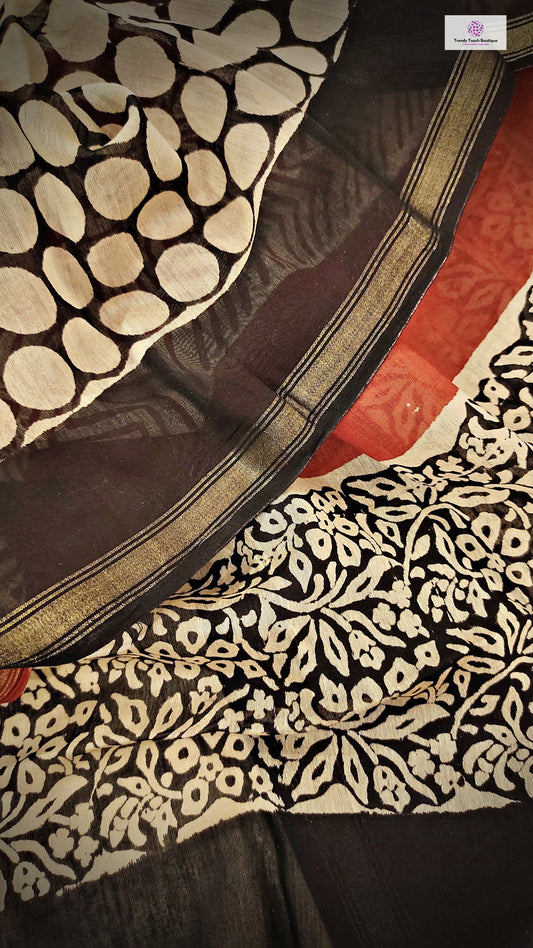 Nisha - Hand Block Print - Chanderi Silk Saree