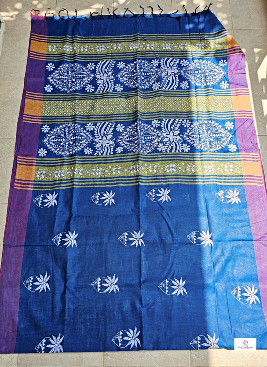 Sarah - Kantha Work - Tie & Dye Linen Saree