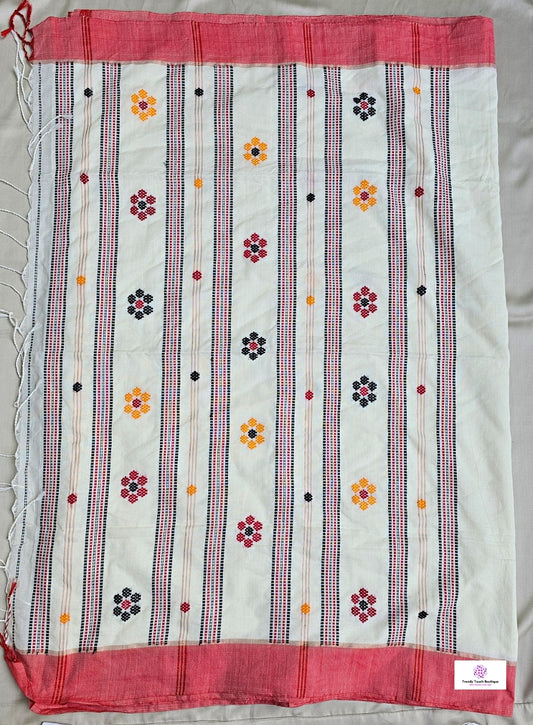 Chaandni - Bengal Handloom Red White - Cotton Saree
