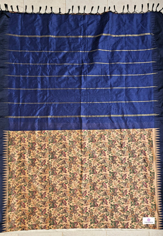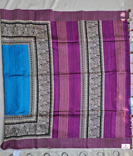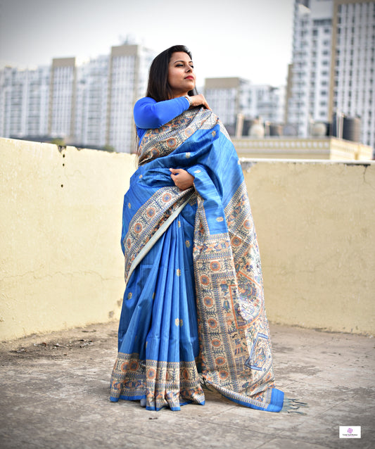 Neel Nadi - Madhubani Print - Semi Ghicha Silk Saree