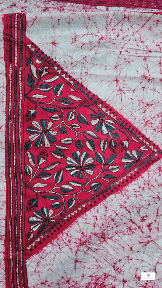 Romance - Kantha Work & Hand Batik - Cotton Saree