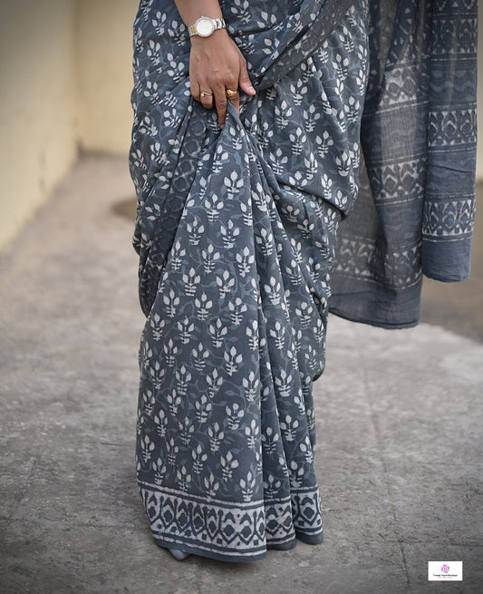 Neela Ambar - Hand Block Print - Mulcotton Saree