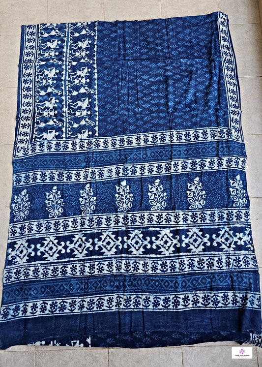 Warli Indigo - Hand Block Print - Mulcotton Saree
