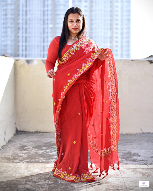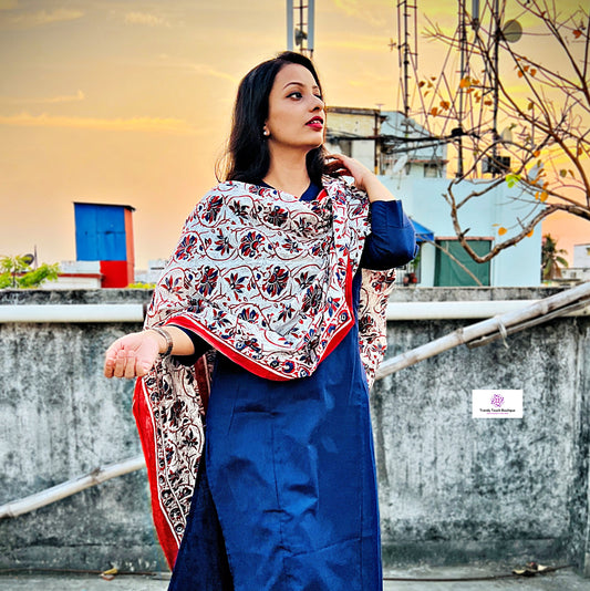 Surkh - Kantha Work - Pure Cotton Dupatta
