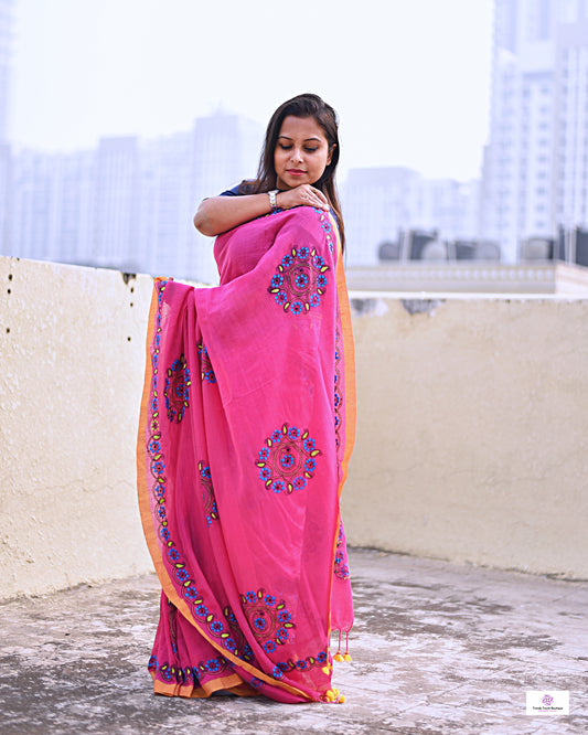 Shaam Gulabi - Kantha Work - Mulcotton Saree