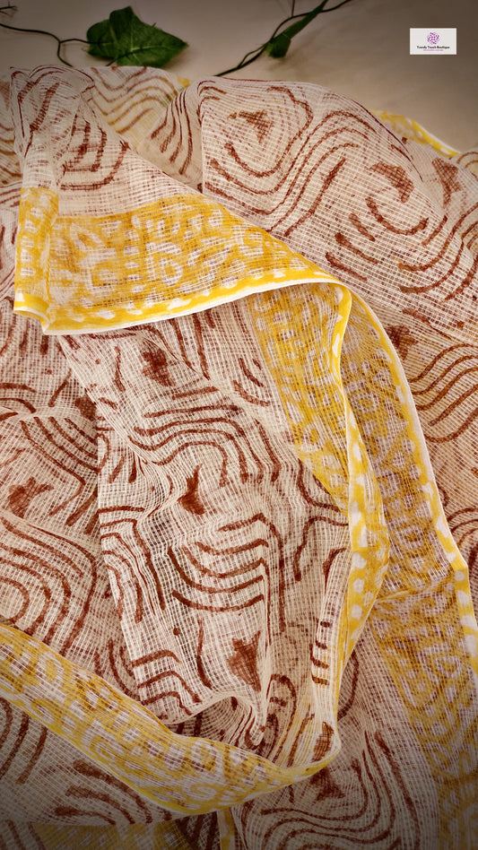 Ushoshi - Hand Block Print - Linen Cotton Saree