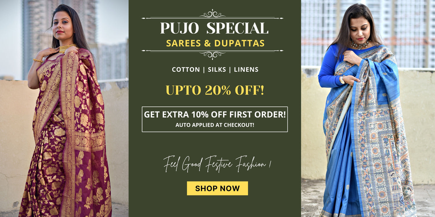A one-stop boutique to explore and shop stylish hand-embroidered, hand-painted, handblock printed, sarees and dupattas for work and special celebrations. Our each creation synchronizes traditional grace with modern swag. Indulge and celebrate your daily life affairs in styles that venerate the flavor of ethnic fashion with a contemporary twist!