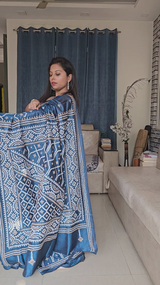 Neeli - Bishnupuri Print - Semi Tussar Silk Saree
