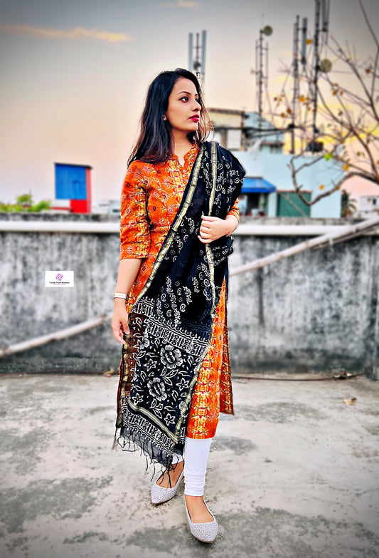 EBONY - HANDBLOCK PRINT- CHANDERI SILK DUPATTA