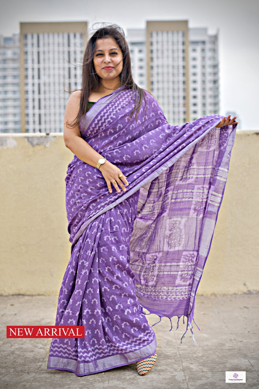 Pink Vibe - Hand Block Print - Kota Doria Saree