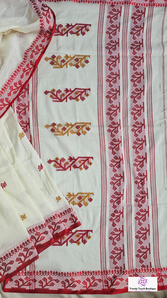 Chaandni - Bengal Handloom Red White - Cotton Saree