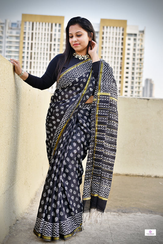 Nisha - Hand Block Print - Chanderi Silk Saree