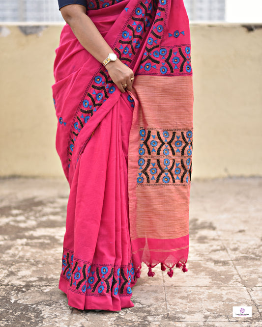 Shaam Gulabi - Kantha Work - Mulcotton Saree