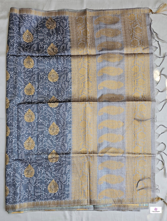 Neeli - Bishnupuri Print - Semi Tussar Silk Saree