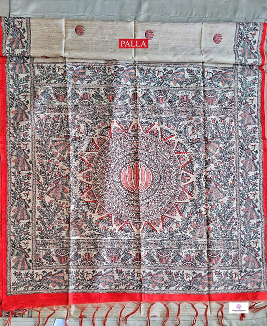 Neel Nadi - Madhubani Print - Semi Ghicha Silk Saree