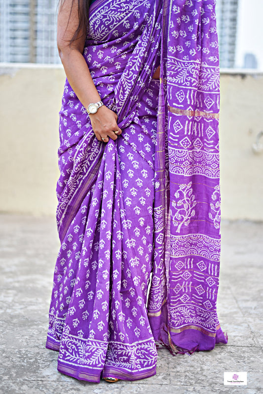 VIOLA - HANDBLOCK PRINT - CHANDERI SILK SAREE (VIOLET)