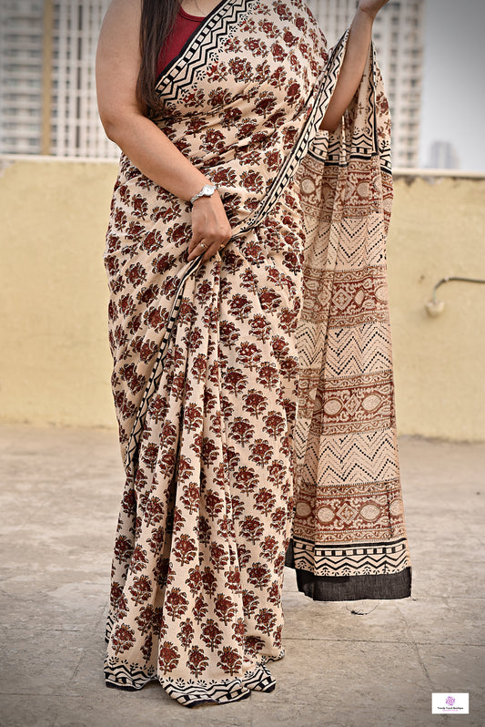 Mini Florals - Hand Block Print - Mulcotton Saree