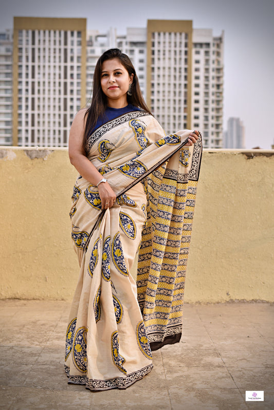 Paisley Love - Hand Block Print - Mulcotton Saree