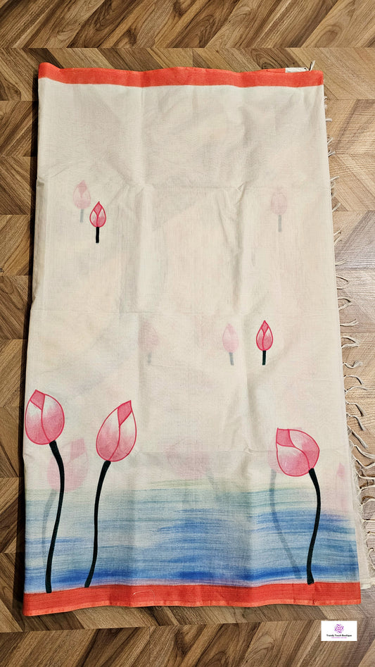 Florals - Handpainted - Pure Cotton Saree