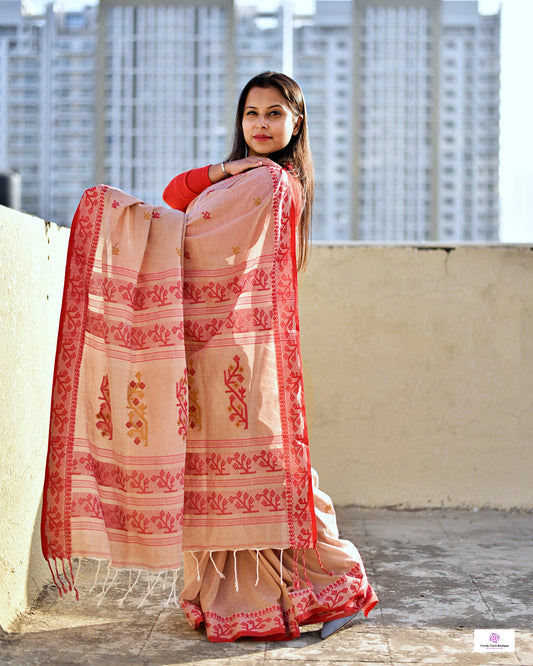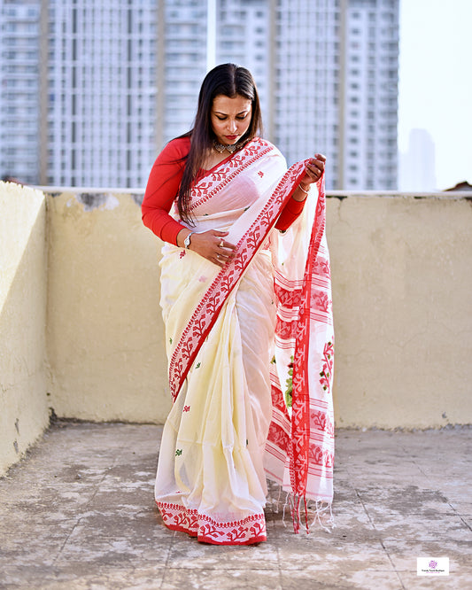 Chaandni - Bengal Handloom Red White - Cotton Saree