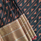 Embrace the allure of our glamorous Black Kanjivaram-Styled Saree - RANJHANA series, featuring an intricate 8-inch contrast copper zari border meticulously Jacquard woven for an opulent touch. This exquisite saree effortlessly blends tradition with modern glamour, making it the perfect choice for any festive occasion, whether for personal wear or as a thoughtful festive or bridal gift. With its rich heavy border beautifully contrasting the saree body, you'll exude timeless charm and elegance, capturing attention wherever you go.