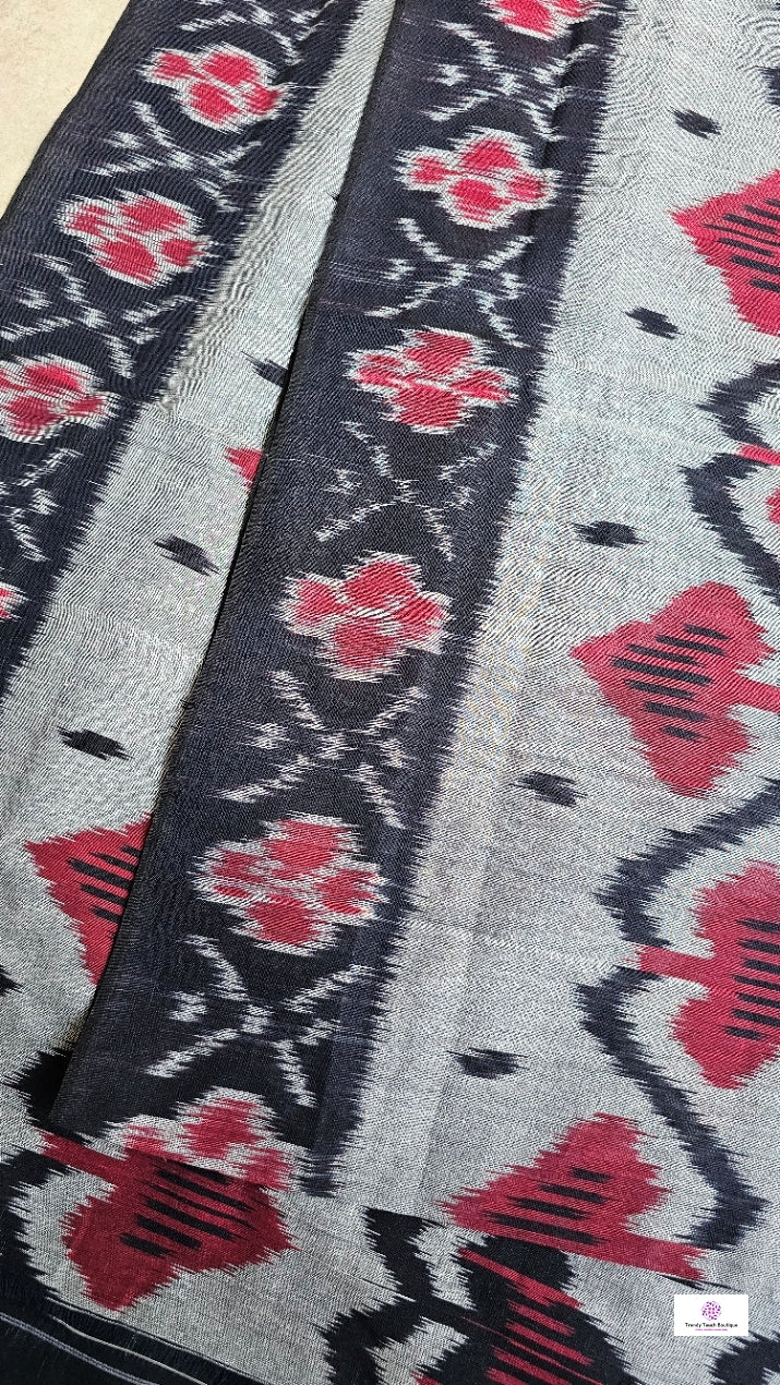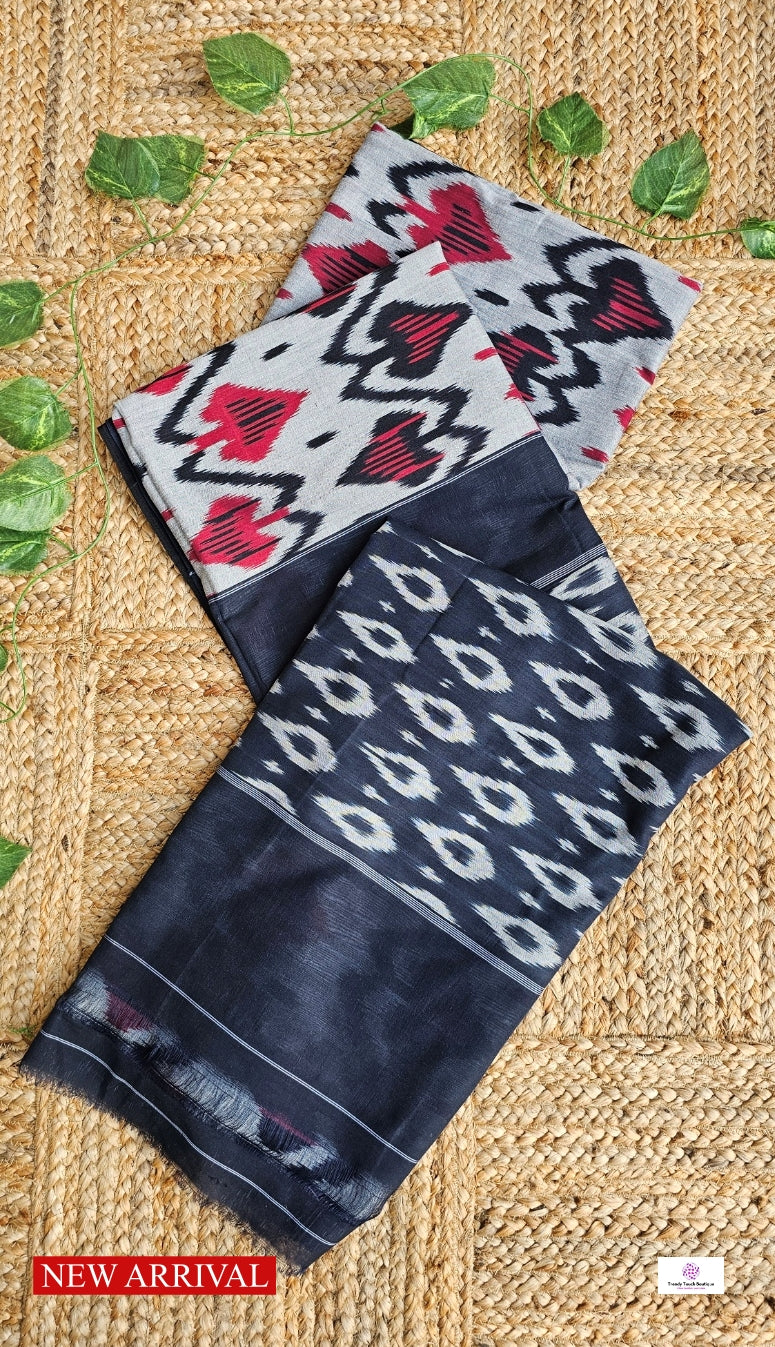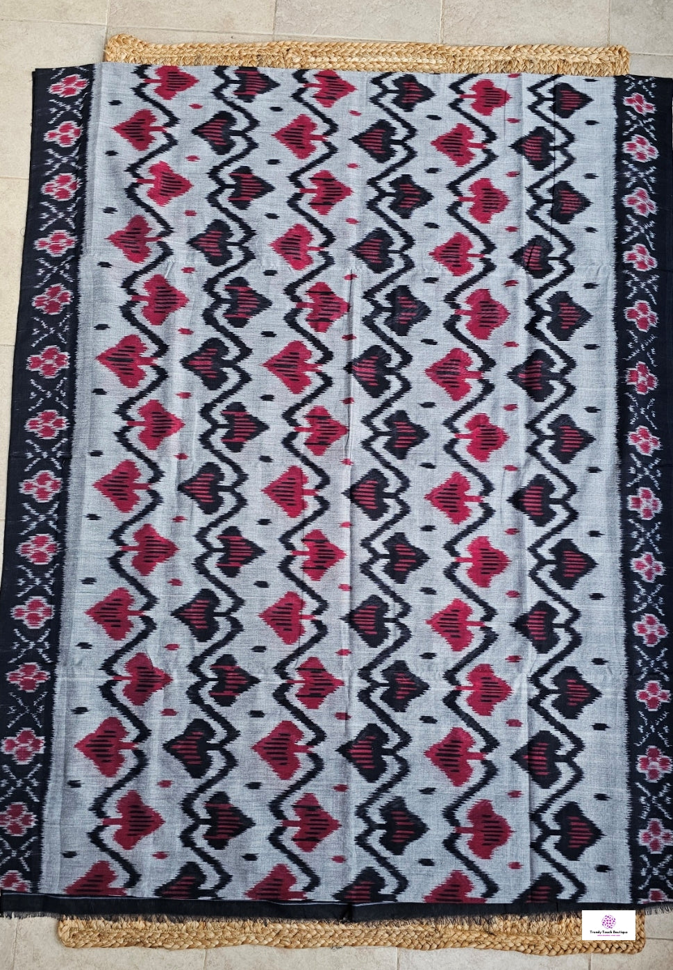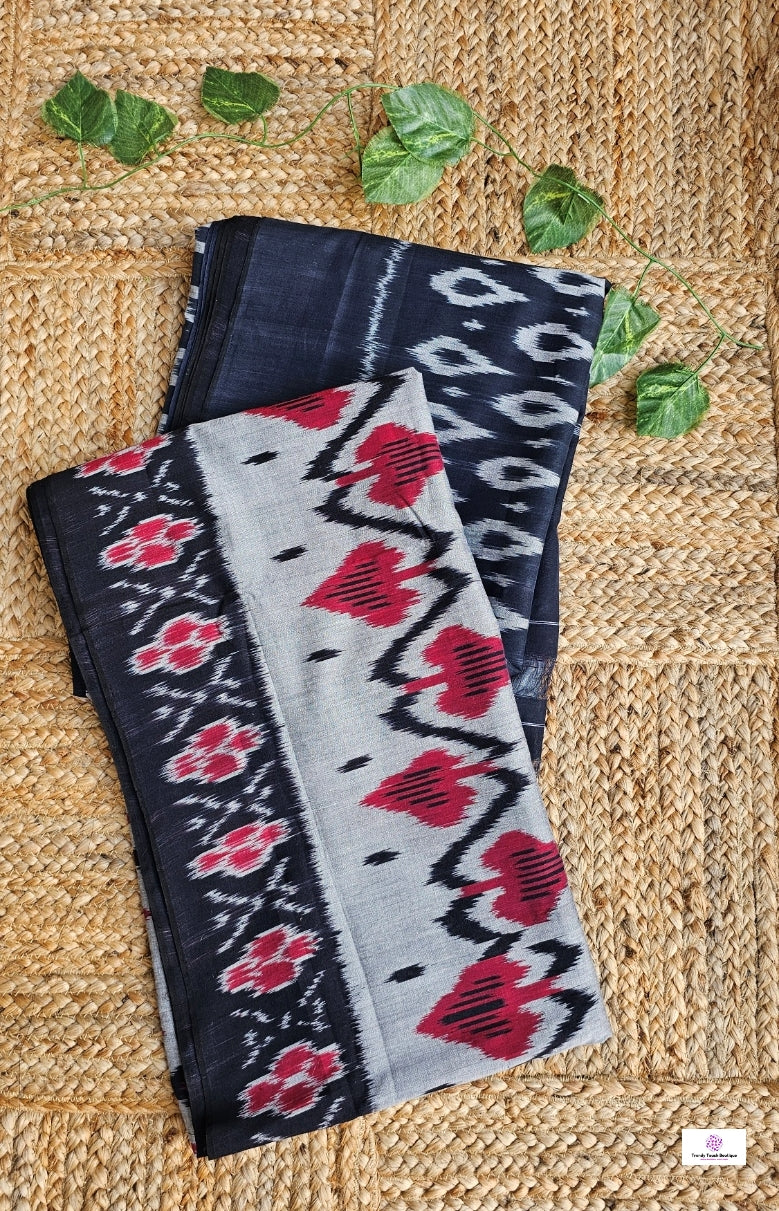 Step into a story woven with heritage—this Pochampally handwoven cotton ikkat saree is not just attire, it’s a tribute to generations of craftsmanship. Made from the purest cotton, its soulful blend of maroon, grey and black and the time-honored geometric motifs reflect the heart and hands of artisans who breathe life into every thread. This is more than just a saree—it’s a piece of cultural pride, a legacy wrapped in grace, and a timeless expression of artistry you can carry close to you.